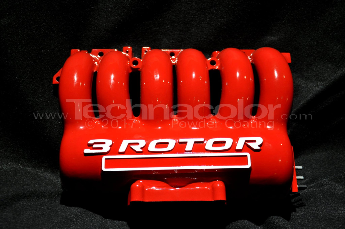 Mazda 3 rotor intake coated in mirror red with satin lettering